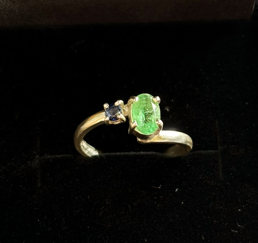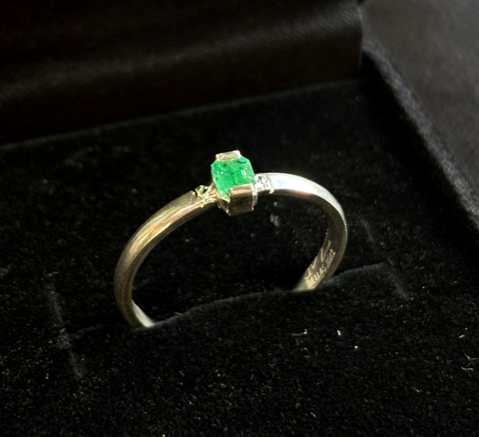 Anel em prata 950 com Banho de Ródio e pedra Esmeralda legitima - Gota 5.5mm.
