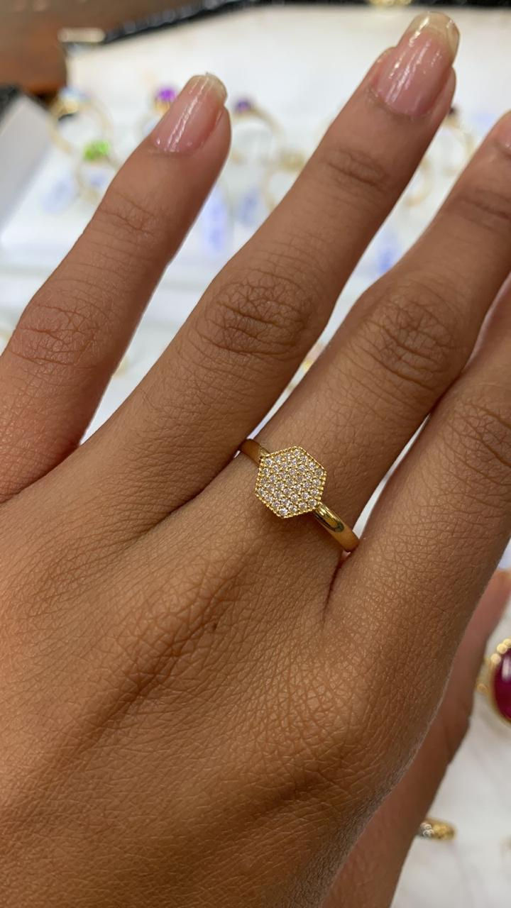 Anel Solitário Chuveirinho em Ouro com Zirconias